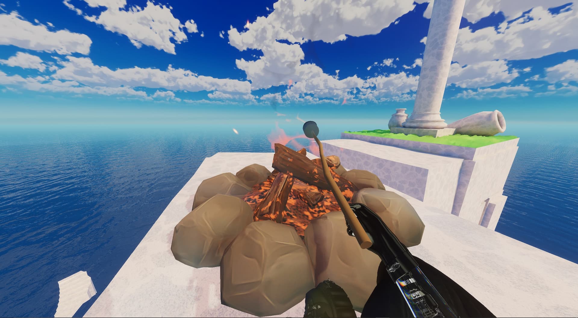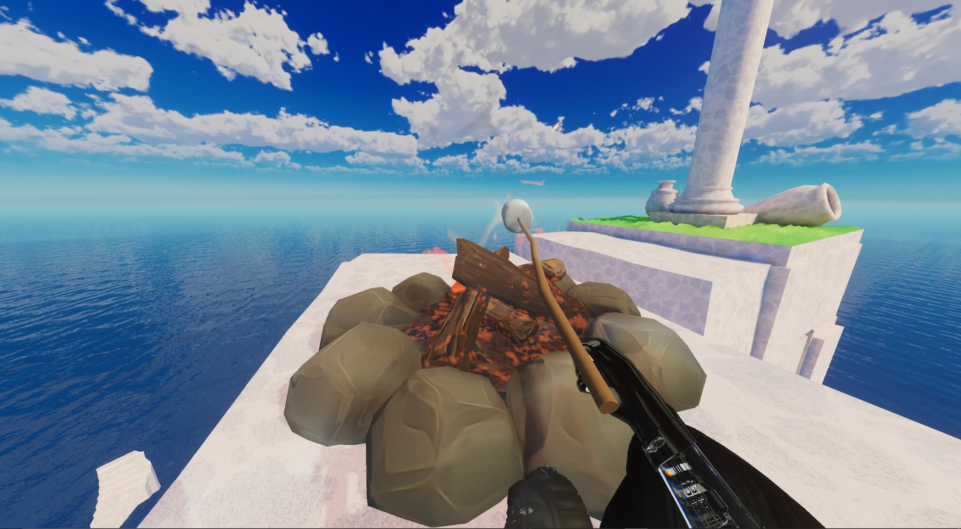 The marshmallow on a stick, once spawned in, can be picked up and then